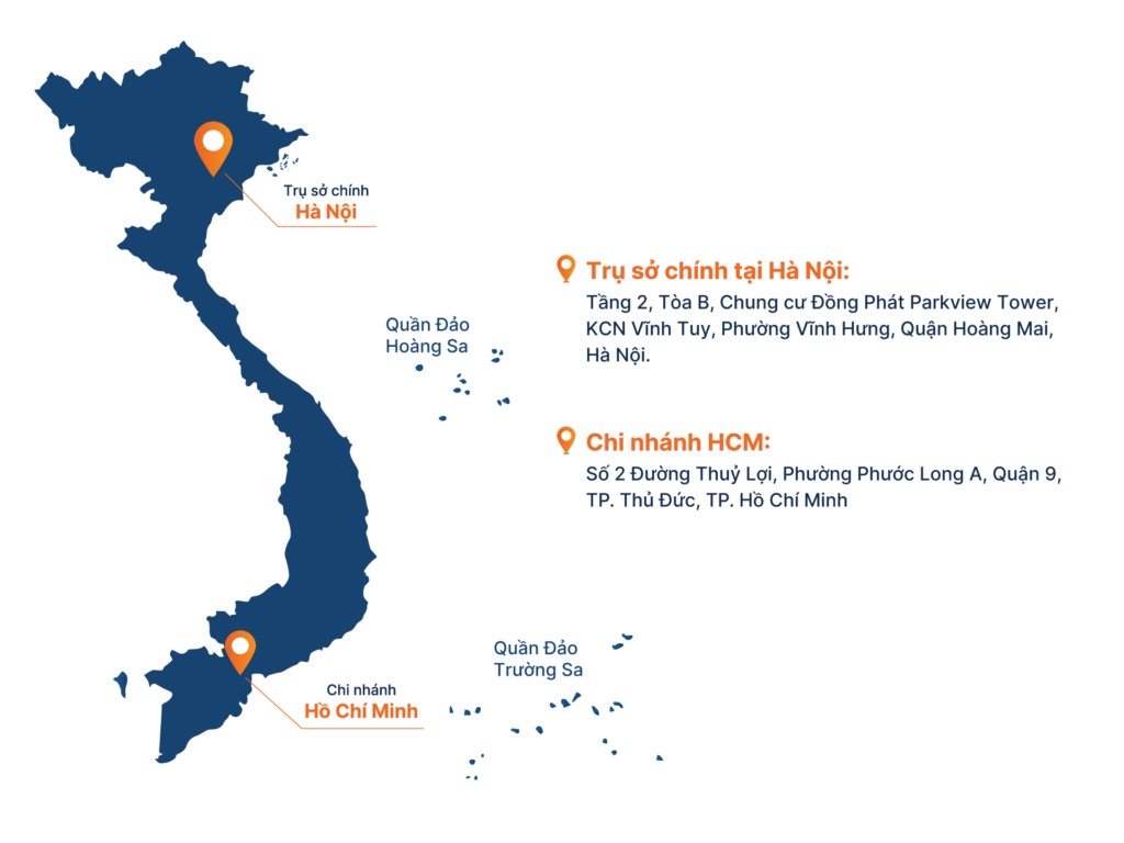 Trụ sở chính: Tầng 2, Tòa B, Chung cư Đồng Phát Parkview Tower, KCN Vĩnh Tuy, Phường Vĩnh Hưng, Quận Hoàng Mai, Hà Nội.